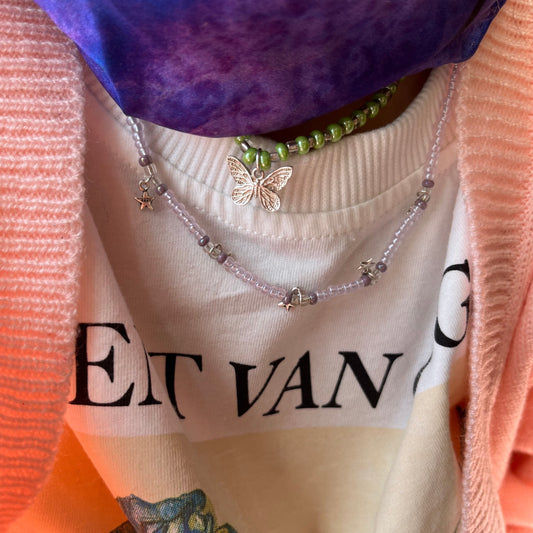 Lavender necklace with mini star charms in .925 silver